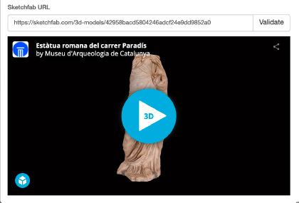 To include a 3D model you just have to choose an available model from the Sketchfab website and add the URL of the 'Share' option in the corresponding field.