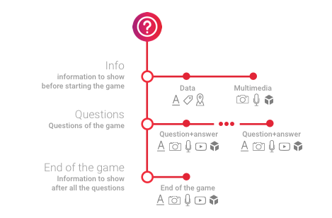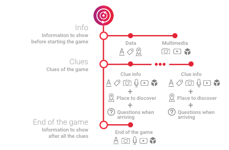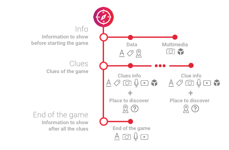 In the diagram on the right you can see the elements that are needed to create a treasure hunt and that you should keep in mind while designing it.