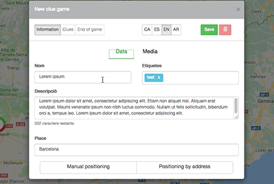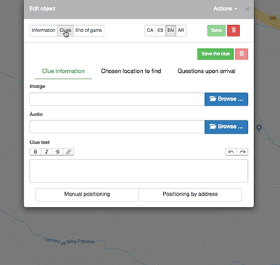 Clue information: Fill in the fields with the information of the clue so that the user is able to find the place.