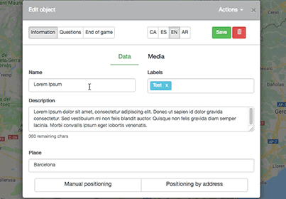 The key of the game consists in designing and asking questions that the user has to resolve based oon observation, análisis or interaction with some element of the place where they are georeferenced.