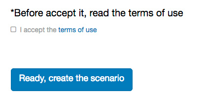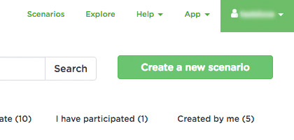 In order to be able to create scnearios you must be logged-in. Once you have logged in you will be able to create a scenario clicking on the “create a new scenario” button in the library of past scenarios.