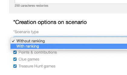 Since September 2019, only quiz games can be created in the scenarios with ranking.